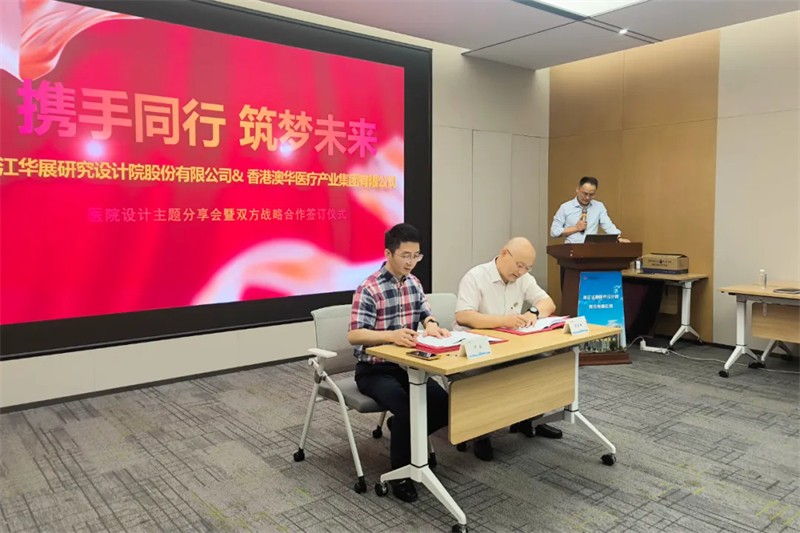 2025年9月23日下午,香港澳华医疗产业集团有限公司与浙江华展研究设计院股份有限公司在浙江华展新心学堂隆重举行医院设计主题分享会暨战略合作签订仪式。